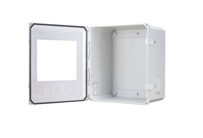 Our outdoor alarmed cabinets are designed to fit all major AED manufacturers while maintaining the smallest wall footprint possible. Fully gasketed and branded with highly-reflective stickering, the OWC will catch the eye of first responders while safely harboring your AED and its accessories from wind, sleet, hail, snow, and more! They are fabricated from a premium plastic molding, with state-of-the-art venting and clasp seals to ensure the AED remains safe while not in use.